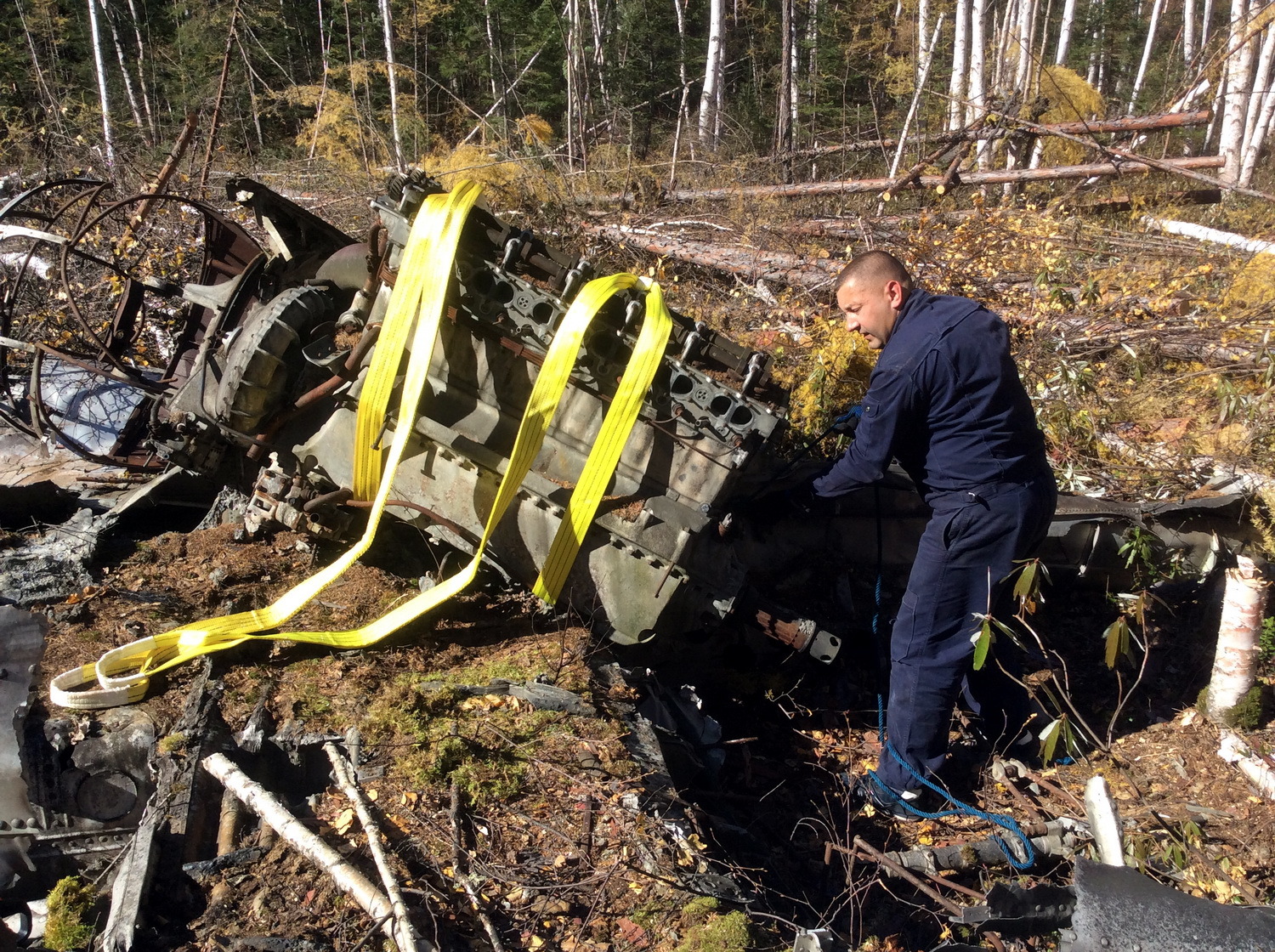 В первых числах октября экипаж вертолёта Ми-8 и группа специалистов Хабаровского авиационно-спасательного центра МЧС России при помощи внешней подвески перевезли из труднодоступной местности Сихоте-Алиня четыре двигателя общей массой 2000 кг и части самолета.