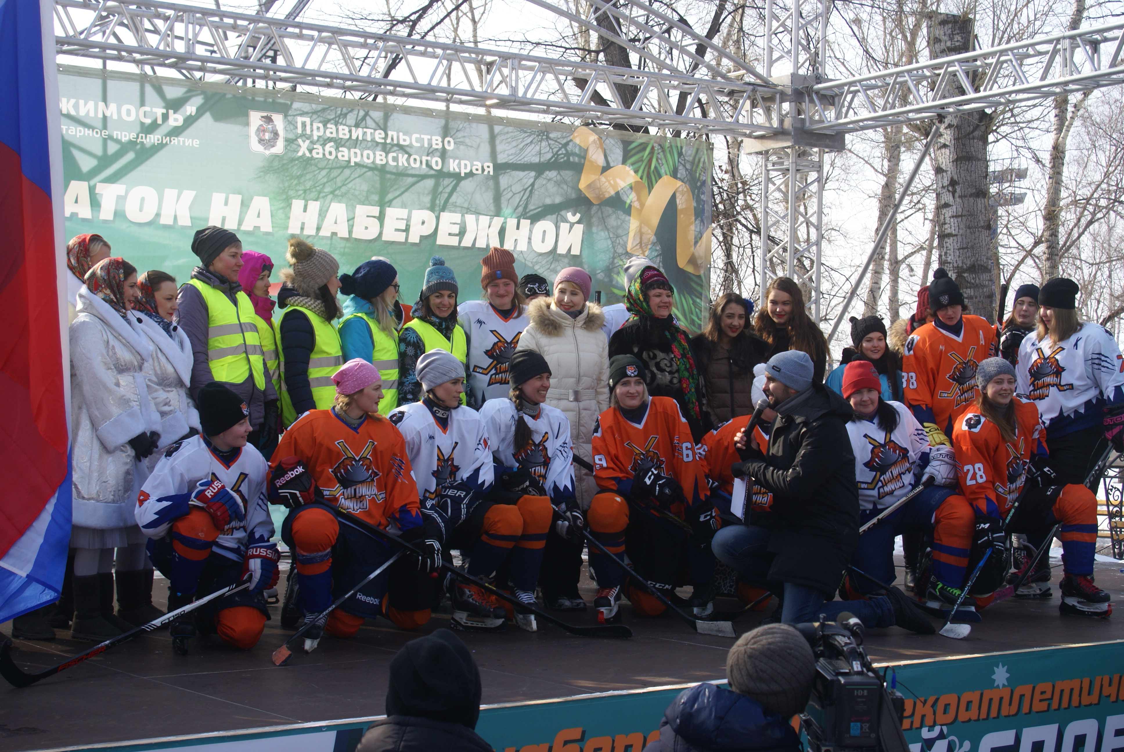 Открыли праздничную программу девушки женской хоккейной команды «Тигрицы Амура». Каждая из спортсменок настоящая красавица и яркая индивидуальность. В этот день «Тигриц» с праздником поздравили настоящие мужчины- участники ЛХК «Амурские Барсы», которые выехали на лед с букетами тюльпанов. В ходе товарищеской встречи «Барсы» уступили милым дамам, за которых горячо болели все гости катка.