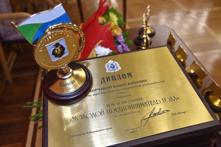 в Хабаровске состоялась церемония награждения победителей XXII краевого ежегодного конкурса «Предприниматель года». Почётные дипломы и памятные знаки победителям вручил первый заместитель Председателя Правительства края по экономическим вопросам Василий Шихалев.