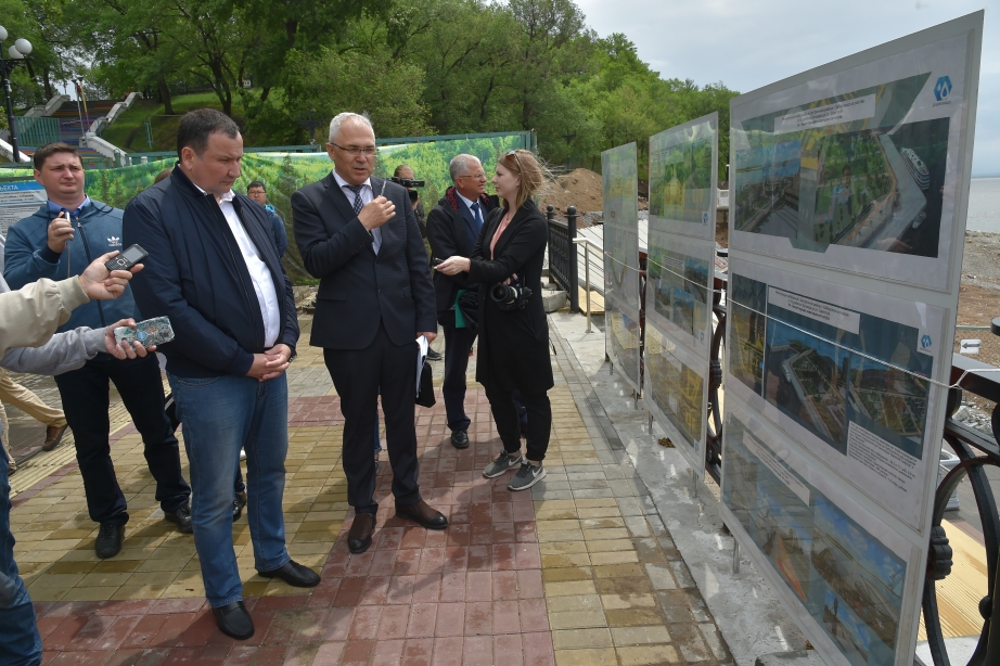 Он проинспектировал строительство туристических объектов в краевой столице и, в частности, проверил ход реконструкции набережной Хабаровска. Сопровождали его руководитель аппарата губернатора и правительства края Аркадий Мкртычев, главный архитектор региона Александр Селеменев и начальник управления по туризму министерства культуры края Виталий Селюков.
