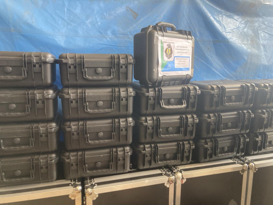 Добровольческому отряду БАРС-8 "Хабаровск", где служат сотрудники правительства края, органов исполнительной власти, муниципальных администраций, Дмитрий Демешин вручил тележки на электроприводе, беспилотники и комплексы спутниковой связи.