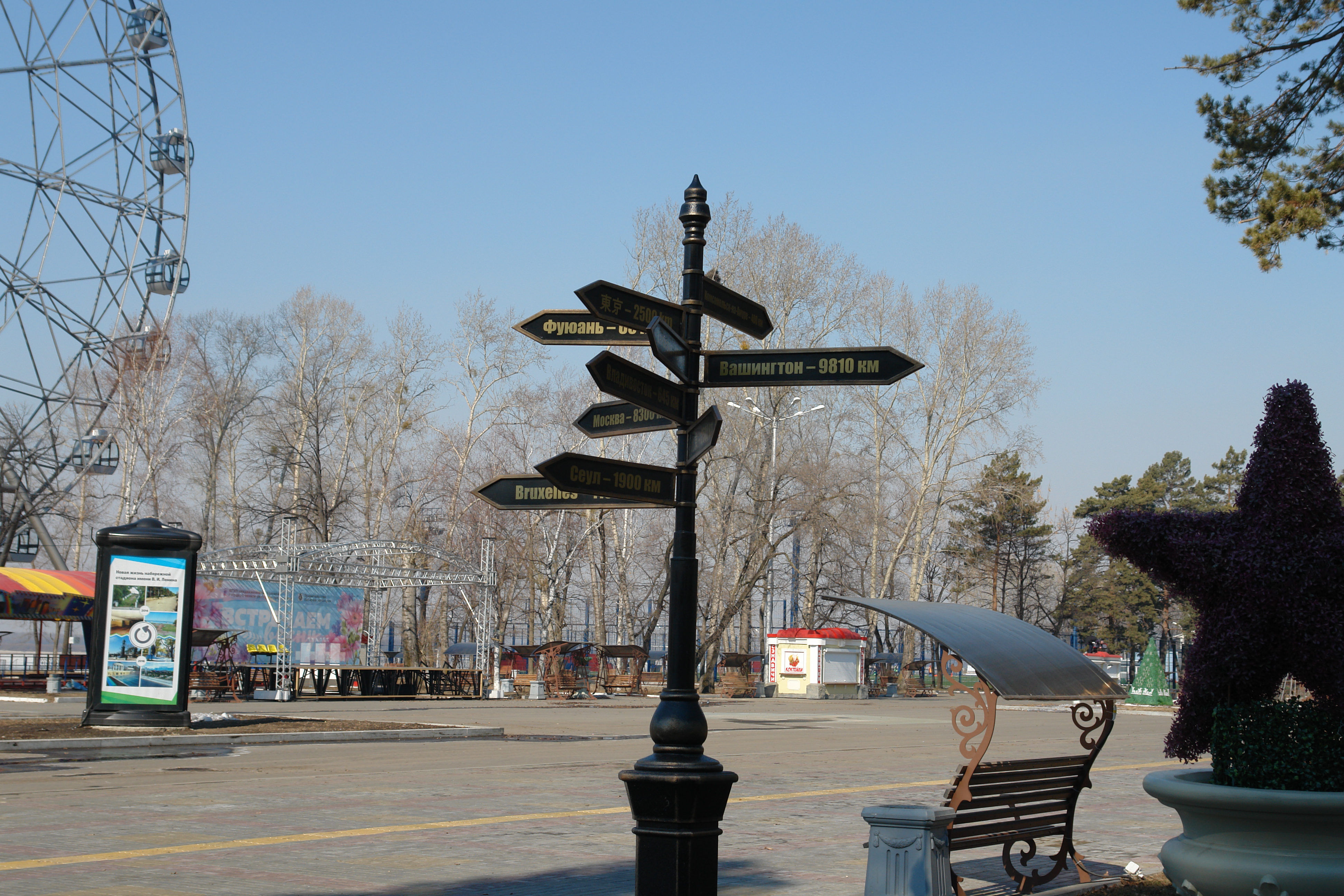 Для удобства туристов парковая зона набережной будет оснащена системой навигации. Здесь будут установлены навигационные столбы, появятся таблички на объектах, расположенных на стадионе им.Ленина. Они будут исполнены на пяти языках: русском, английском, японском, корейском и китайском.