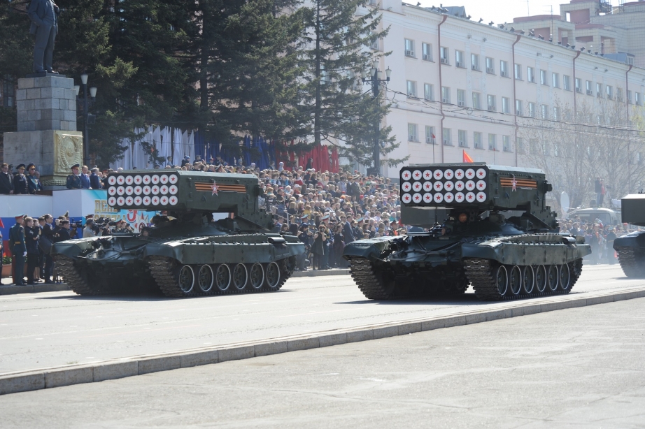 Жителям и гостям краевой столицы продемонстрировали современные образцы вооружений Армии России. Это танки «Т80», «Т72 Б3», броне-транспортные машины «БМП-2», самоходные гаубицы. Впервые в параде были задействованы тяжелая огнеметная система ТОС-1А «Солнцепек», зенитно-ракетные системы «С-400» и «Тор-М2У», комплексы радиоэлектронной борьбы «Леер-2» и «Инфауна», армейские мотовездеходы АМ-1 и УАЗ 23632-18 «Пикап».