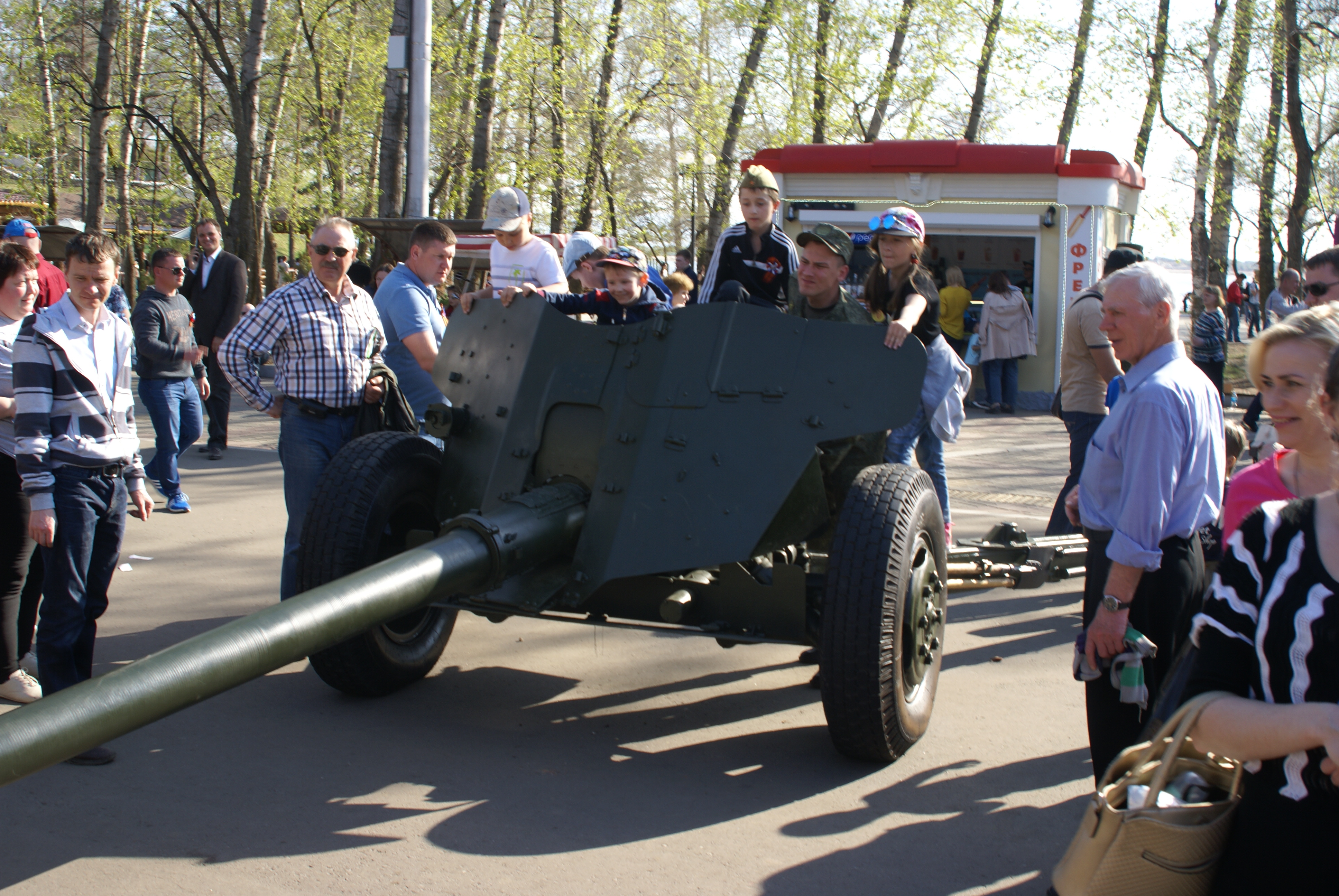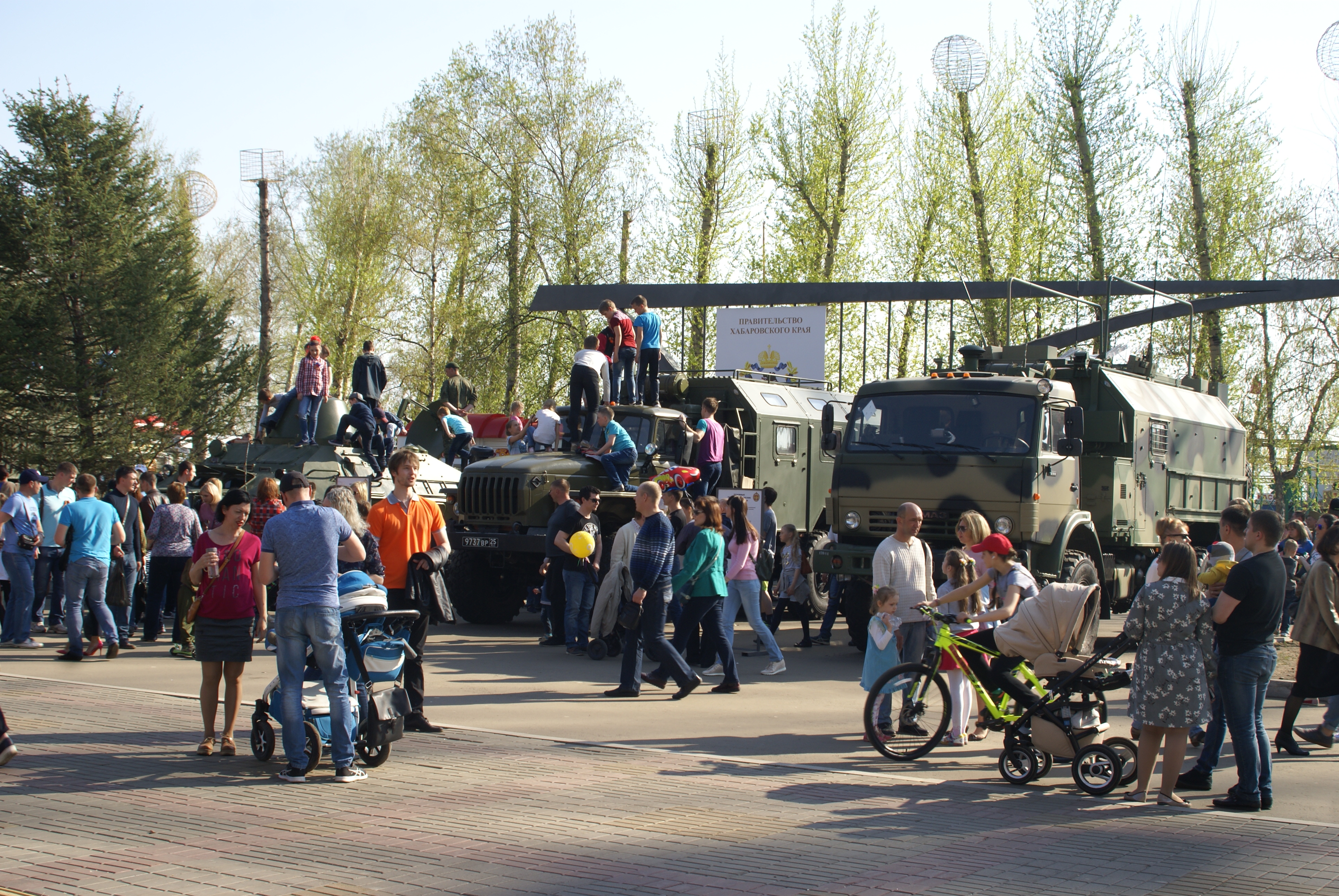 С первыми лучами солнца на территории стадиона им.Ленина была выставлена военная техника, которая находится на вооружении РФ. Представленные боевые экспонаты собрали сотни взрослых и детей, которые с удовольствием фотографировались на фоне уникальной военной выставки. В зоне особого внимания были образцы боевых машин: БТР-82 А, Тайфун-К, бронеавтомобиль «Тигр», комплекс РЭБ «Красуха-4», противотанковая пушка МТ-12, гаубица- 2А65, гаубица Д-30, БТР-80 и другая техника.