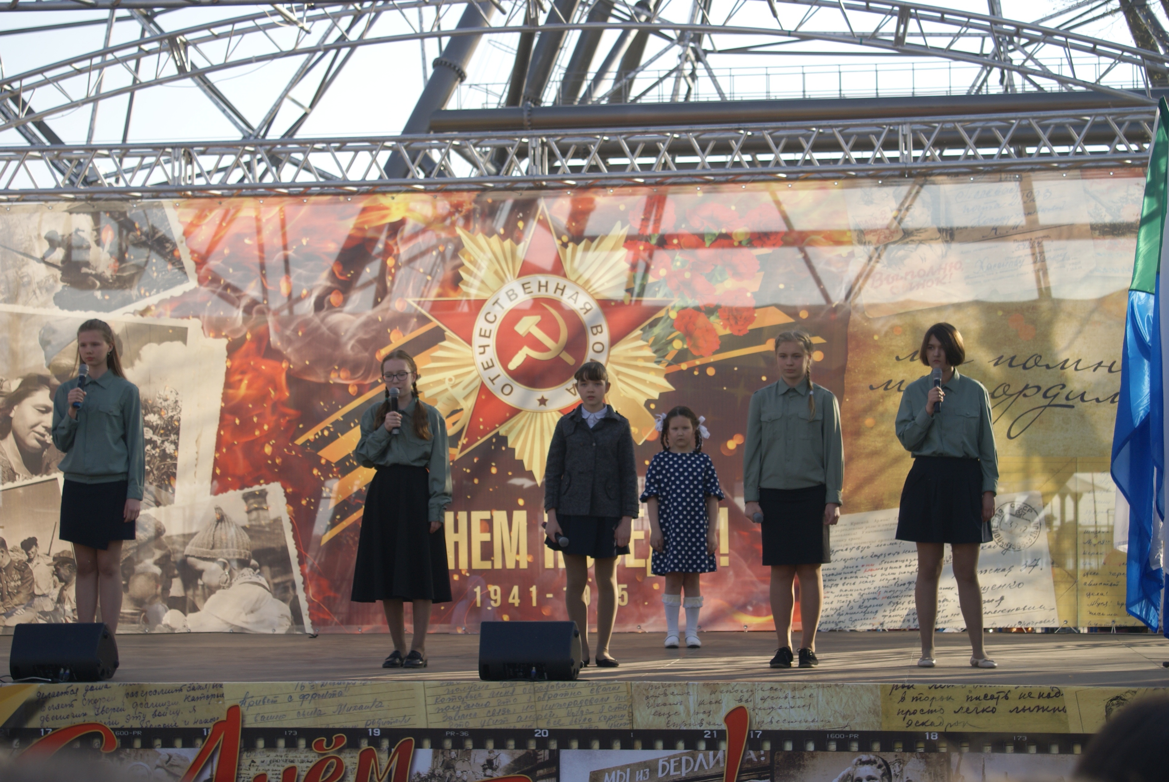 9 мая на территории стадиона им.Ленина действовало сразу несколько концертных площадок. На сцене выступал духовой оркестр «В джазе только дедушки». Перед сквером Любви, Семьи и Верности Всероссийская общественная организация ветеранов «Боевое братство» провела праздничный концерт. Его почетными гостями были ветераны и вдовы участников Второй мировой войны.