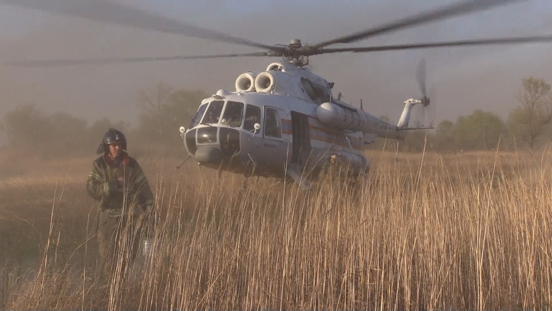 С помощью водосливных устройств экипажами двух вертолетов Ми-8 МЧС России по кромке пожаров, в том числе в ночное время, было выполнено 46 сбросов огнегасящей жидкости, всего 138 тонн воды. Забор воды выполнялся из ближайшей протоки Амура, что значительно сокращало «плечо» подлета к месту проведения работ.