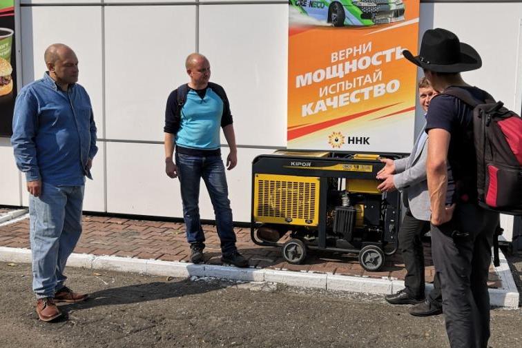 - Это уже примерно пятый визит на АЗС ННК за время нашей поездки. Всегда чистенько, аккуратненько, вежливо. Это еще одно преимущество сетевых заправок: везде действуют единые стандарты, где бы ты ни оказался. Но здесь мы первый раз за всю дорогу увидели вот этот агрегат - мобильный дизель-генератор! Разговорились с сотрудниками, ребята рассказали, что где-то с июля по сентябрь на Дальнем Востоке сезон тайфунов. Из-за обильных осадков и сильного ветра часто оказываются обесточенными населенные пункты. Чтобы АЗС могли работать в нормальном режиме, ННК закупила себе мощные генераторы. Обычно их используют в отдаленных районах. Вот такая особенность Дальнего Востока – есть ли жизнь за МКАДом, практически.