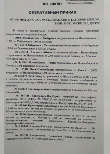 Как сообщают дальневосточные Телеграм-каналы, с конца марта будет приостановлена продажа железнодорожных билетов по ряду межрегиональных направлений из Владивостока и Хабаровска, передает РИА АмурПРЕСС. Официальных заявдений от ДВЖД по этому поводу пока не поступало.