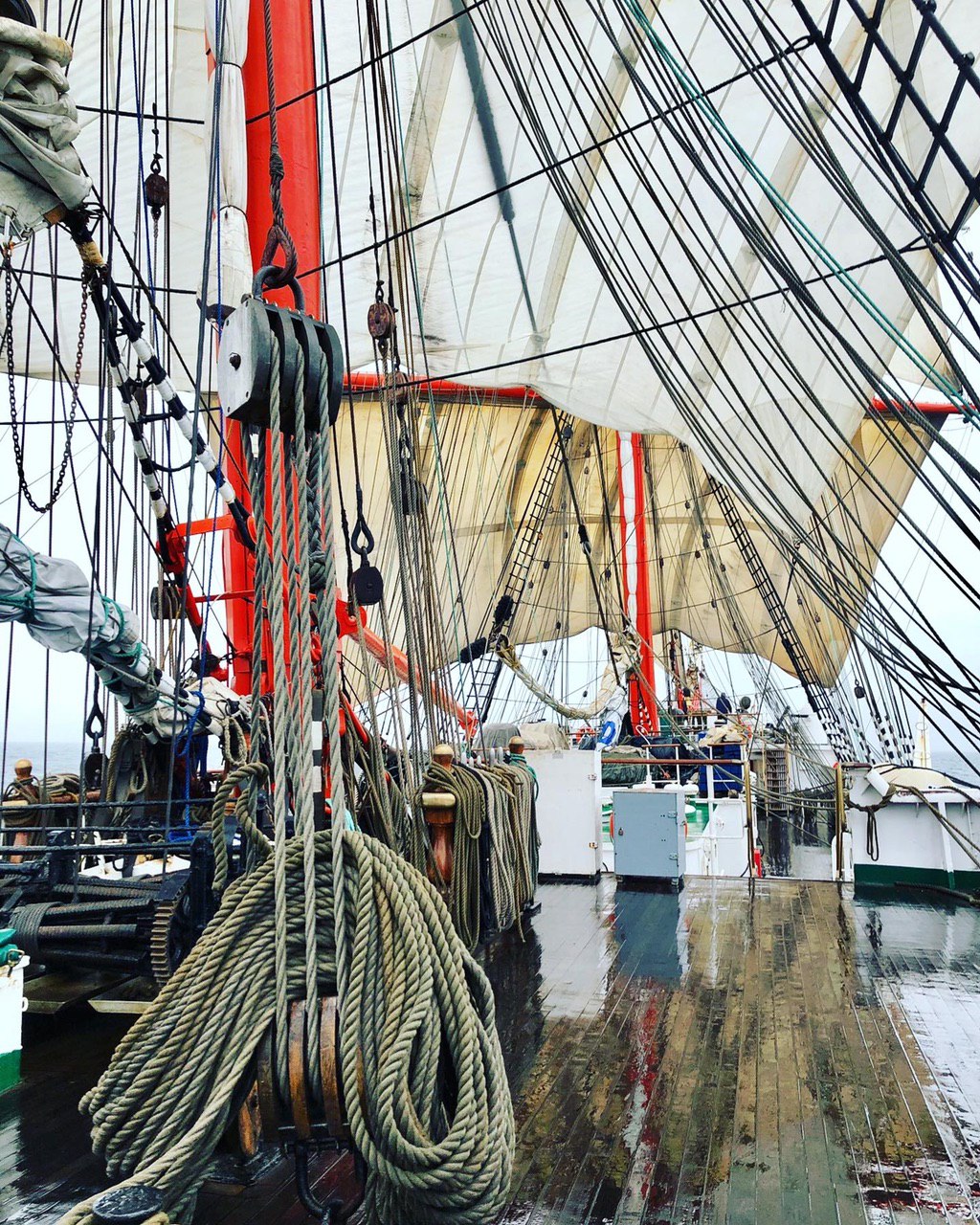 Проливы Лонга и Вилькицкого считаются самыми трудными районами на Северном морском пути по ледовой обстановке, кроме того, в центре сложное взаимоотношение ветров и течений. Сейчас акватория пролива свободна ото льда, поэтому «Седов» может совершать одиночное парусное плавание в этом районе. Температура воздуха +4 градуса °С, волнение моря – 4-5 баллов, скорость – 6 узлов.
