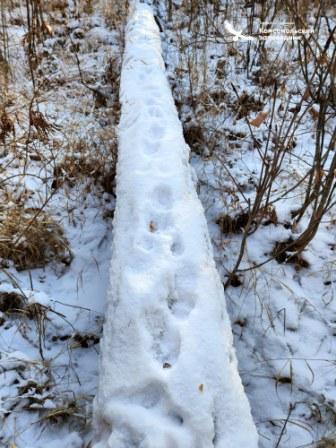 По зимнему лесу прошел косолапый. Может, это его последняя прогулка перед залеганием в берлогу. Лось уже перешел на сухой корм. Все поваленные деревья истоптаны соболем. В кронах деревьев мелькают непугливые кукши и шумные кедровки. Мыши и белки уже начали вскрывать свои спрятанные запасы. Но и вновь упавшие шишки долго «нераспакованными» не останутся".