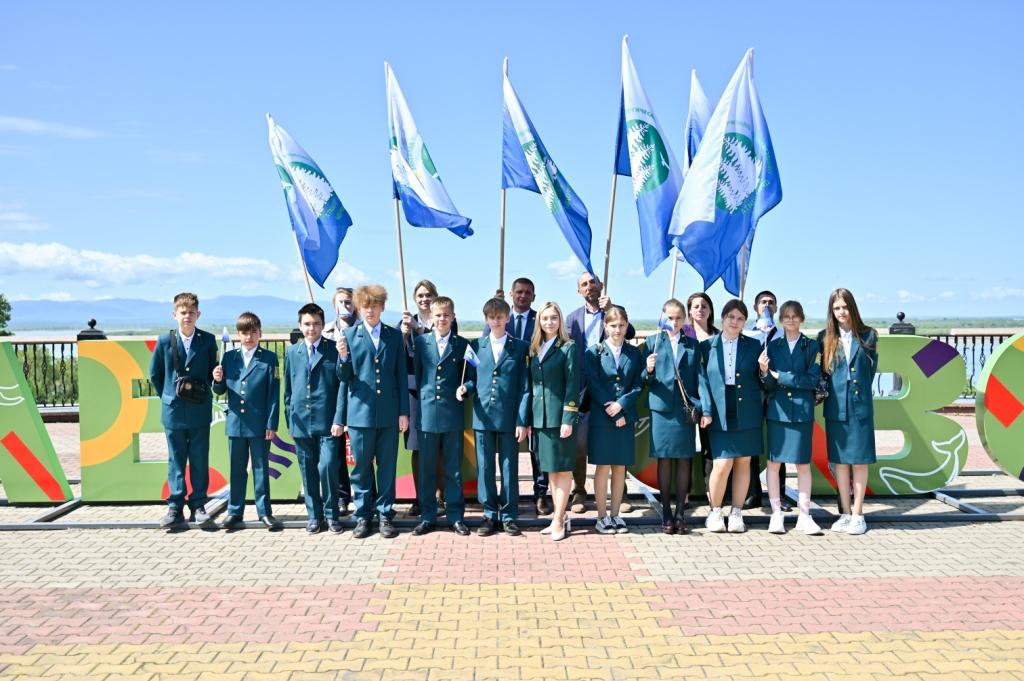 Юные экологи прошли по главной улице Хабаровска от парка Динамо до Комсомольской площади, призывая горожан к бережному отношению к природе и окружающей среде. В экологическом шествии приняли участие 300 детей из 19 образовательных учреждений.