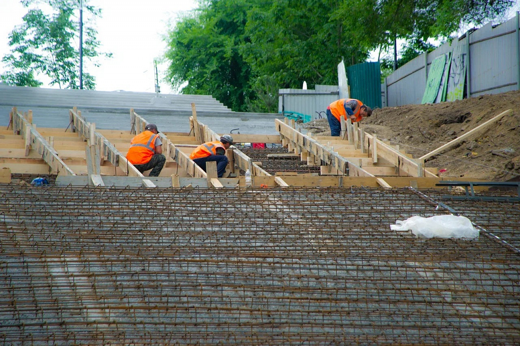 В настоящее время здесь устанавливают монолитные фундаменты, фундаментные балки, лестничные марши и промежуточные площадки. В ближайшее время строителям предстоит установить освещение и видеонаблюдение, провести благоустройство и озеленение территории вокруг объекта.