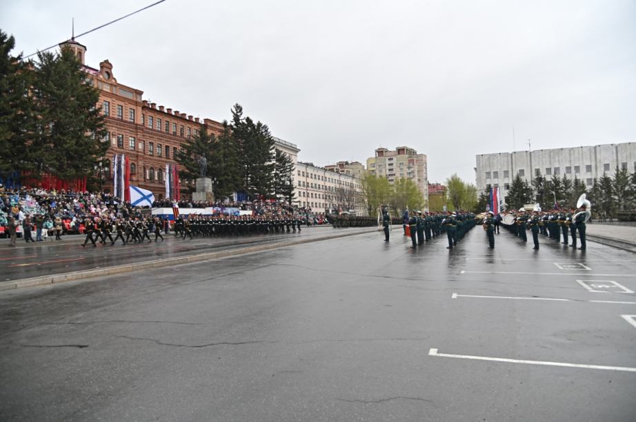 Парадные расчеты прошли по улице Муравьева-Амурского до Комсомольской площади.
