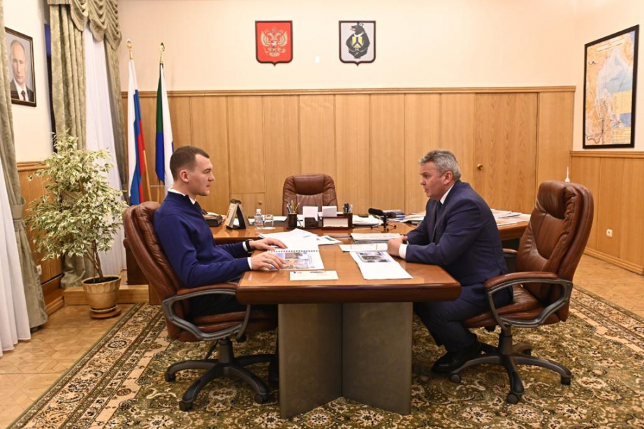 Михаил Дегтярев продолжил серию встреч с мэрами муниципальных образований региона. В среду он принял главу Хабаровского района Александра Яца.