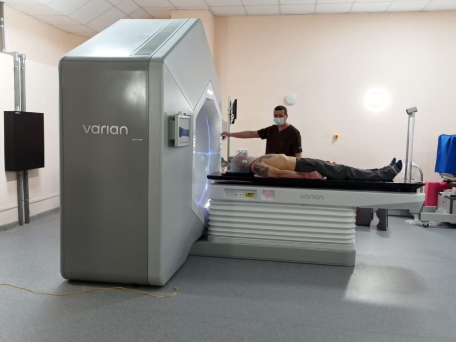 Кроме того, в онкоцентре установили первый в России линейный ускоритель туннельного типа в рамках нацпроекта «Здравоохранение». Это устройство, которое чаще всего используется для проведения наружной радиотерапии при злокачественных новообразованиях любых тканей и органов. Оно обеспечивает доставку к опухоли потоков фотонов. При этом повреждаются клетки новообразования, а окружающие здоровые ткани остаются в неприкосновенности.