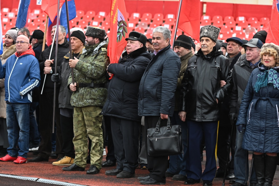 В поддержку Президента страны Владимира Путина и проводимой им политики участники митинга развернули Государственный флаг Российской Федерации. Сегодня уже очевидно, что ставка Запада на раскол российского общества, вызванный спецоперацией на Украине, себя не оправдала. Огромные усилия пропагандистской машины недружественных России стран привел к обратному эффекту: наше общество сплотилось как никогда. Это подтверждают и статистические данные.