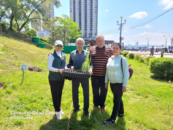 Сосновая аллея посажена на набережной Амура в ходе акции "Зеленое будущее края"