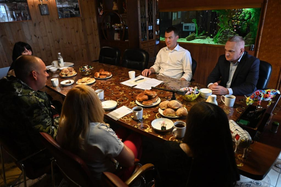 «Добро пожаловать на Родину!» - именно так Михаил Дегтярев поприветствовал переехавшую в Хабаровск из Краматорска семью Гириных. Встреча губернатора и вынужденных переселенцев с Украины состоялась на новом рабочем месте главы семьи в КФК «Краснореченское», где он сегодня трудится водителем.