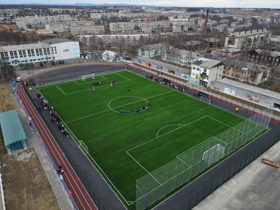 В результате проведенных работ на стадионе появились новые трибуны с защитным козырьком на 204 посадочных места, были оборудованы подтрибунные помещения для хранения инвентаря. На футбольном поле уложено искусственное травяное покрытие площадью 90х60 м, а вокруг смонтированы легкоатлетические беговые дорожки с тартановым покрытием. По периметру игрового поля установлены металлическое ограждение и наружное освещение, сообщает пресс-служба губернатора и правительства Хабаровского края (текст и фото).