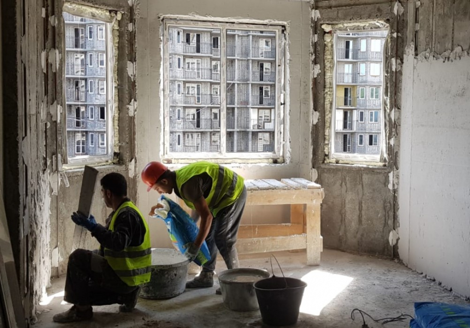 На объекте по ул. Салтыкова-Щедрина общая строительная готовность 2-х секционного дома составляет 59%, 3-х секционного – 50,7%. Здесь трудится 140 рабочих. Керим Сунгуров поручил подрядной организации увеличить количество занятых на объекте.