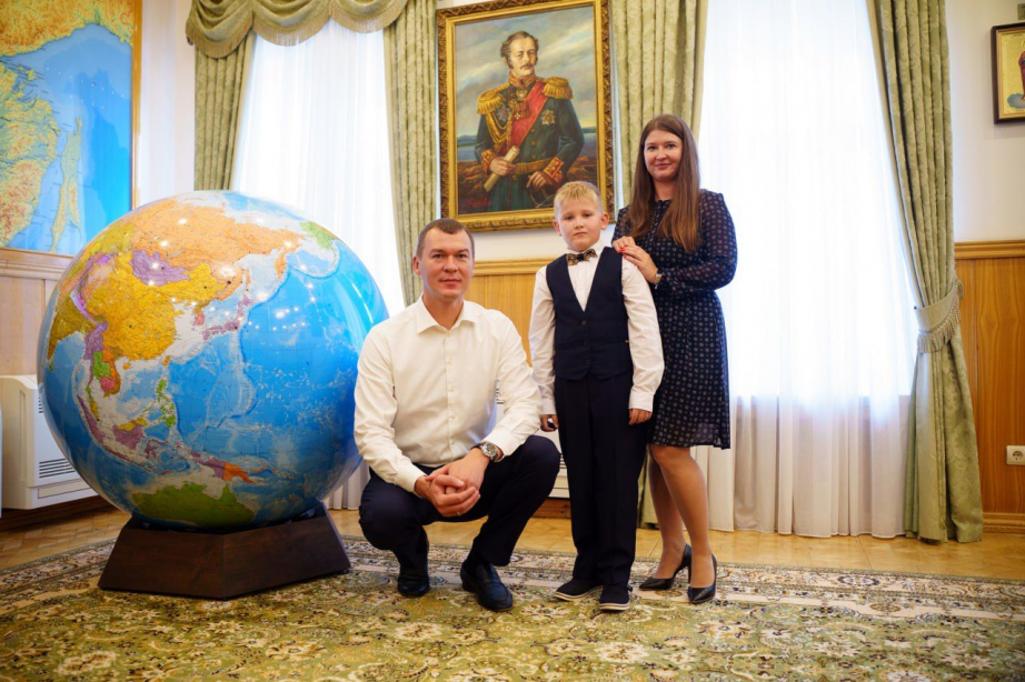 Сегодня в гости к губернатору Хабаровского края пожаловал ученик второго класса Егор и его мама Александра Васькина. Глава региона принял семью бойца в своем кабинете, побывать в котором очень мечтал второклассник Егор.